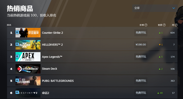 至本文截稿前,已经发售了四个星期的爆款、第三人称合作射击游戏《绝地潜兵2》,依然在Steam平台的全球热销榜上名列前茅。