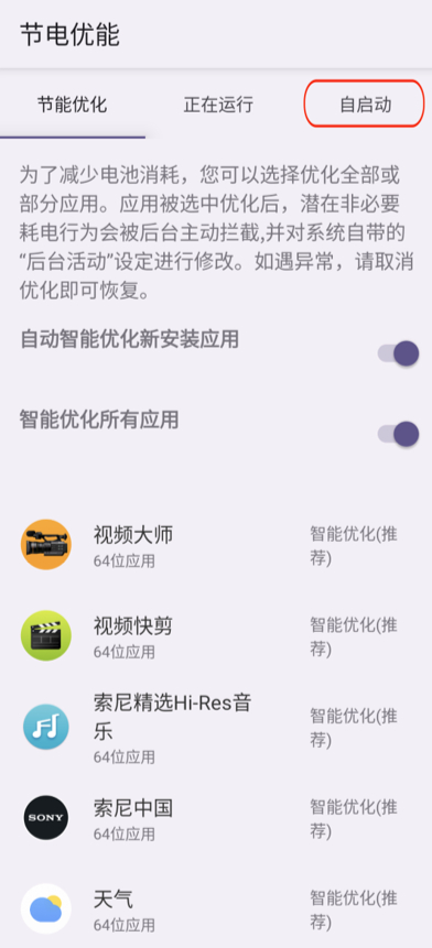 节电优能:新增自启动管理;