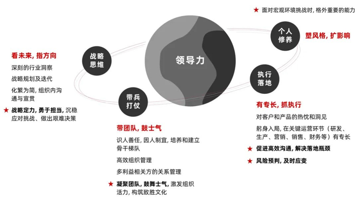 在经济和时势的挑战下,过往跟随市场“躺赢”的时代一去不回。对外独具慧眼、当机立断;对内鼓舞人心、凝聚团队,从而引领企业和团队穿越周期,行稳致远,是企业管理者亟需的新型能力模型(图1)。