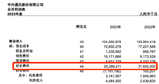 相较于2019年中兴通讯年报,当年的研发投入达125.5亿元,四年内实现研发费用翻番。