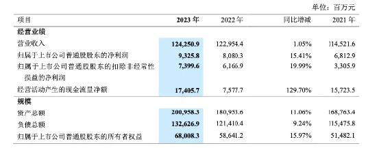 中兴通讯发布2023年度报告。报告期内,公司实现营业收入1242.5亿元;毛利率41.5%;归母净利润93.3亿元,同比增长15.4%;扣非归母净利润74.0亿元,同比增长20.0%;经营性现金流净额达174.1亿元,同比增长129.7%;营业收入、净利润、经营性现金流净额均创新高。2023年度拟派发现金分红总额占归母净利润比例达35%。