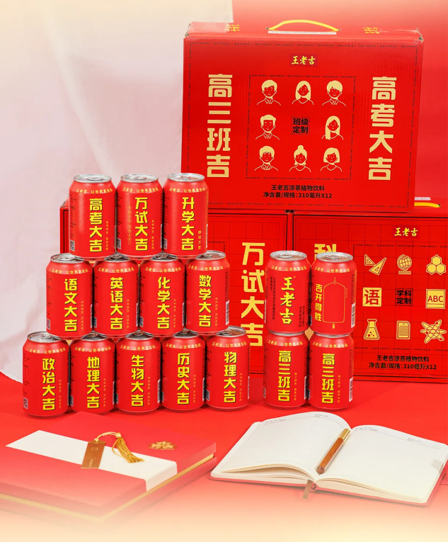 在2024高考进入倒计时100天之际,王老吉官宣推出高考大吉罐、高三班吉罐、高考学科罐、手写吉愿罐、万试大吉罐、升学大吉罐六款高考系列定制罐。