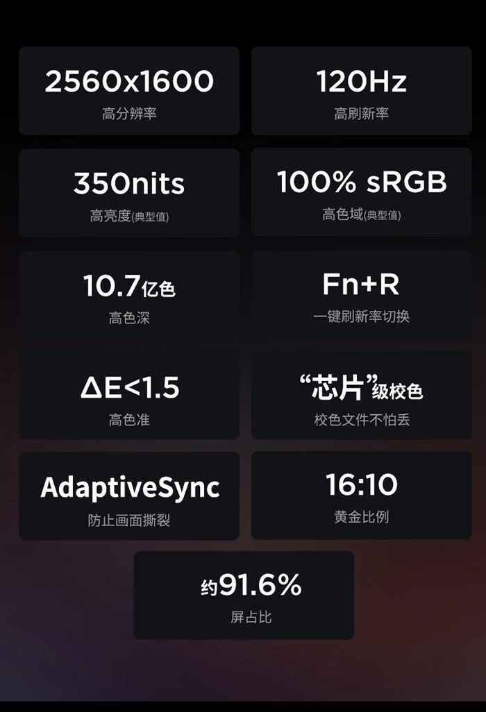 屏幕方面,小新 Pro 16 2024 笔记本采用 16 英寸 16:10 比例屏幕,分辨率为 2.5K,刷新率为 120Hz,亮度为 350 尼特,覆盖 100% sRGB。