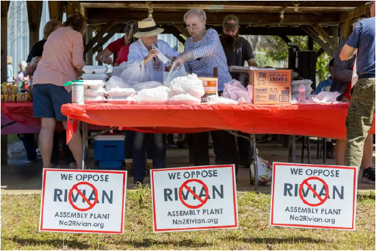 从2022年初开始,当地一些环保组织就开始不断发动居民,通过不断抗议、起诉政府以及施压议员的方式,在过去一年半时间,一直试图阻止Rivian工厂开工。