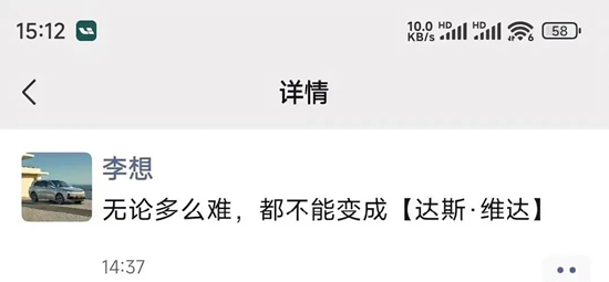 他在朋友圈发文称,“无论多么难,都不能变成【达斯·维达】”,疑似回应近期关于MEGA的传闻。作为电影《星球大战》中的一个反面角色,李想可能是想借达斯·维达来表达:在逆境中仍要坚守底线,即使遇到困难不会选择放弃。