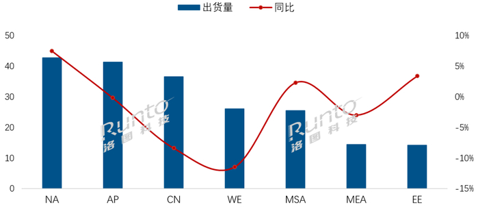 细分到销售区域来看,北美、拉美和东欧三大市场的出货量实现了同比增长;亚太、中国、西欧和中东非的出货量同比均下降。