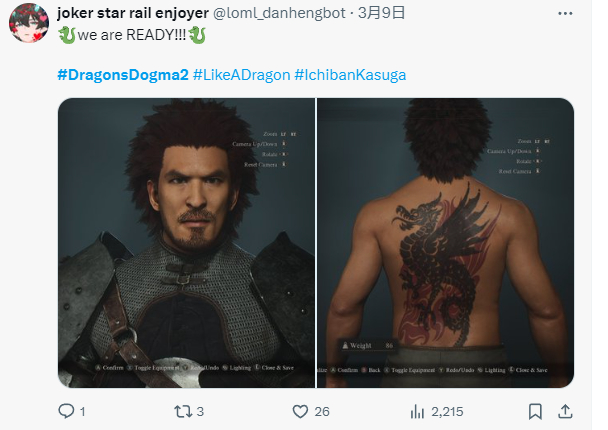 其他作品的粉丝也不甘落后,纷纷祭出了自己钟爱作品中的角色,比如《如龙8》中的春日一番,背后同样有夸张的黑道纹身: