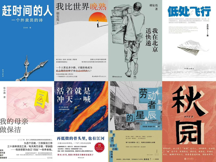 去年2月,“外卖诗人”王计兵的诗集《赶时间的人》上市,首印很快销售一空,接下来一个月又两次卖断货;3月,胡安焉《我在北京送快递》迅速成为豆瓣2023年度图书的榜首作品,加印10次;杨本芬奶奶的《秋园》印数已逼近40万册,《浮木》《我本芬芳》的总印数也都在30万册左右。