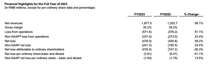 同期,销售和营销费用为1.5亿元,同比增长42.0%,一般及行政费用为3.2亿元,同比增长59.3%,研发费用为7.9亿元,同比增加42.4%,该财年净亏损4.76亿元,同比扩大58.2%,但首次实现了年度经营现金流转正。