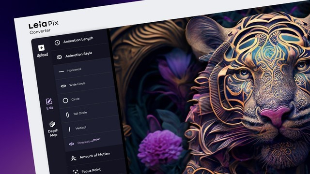 LeiaPix可以将图像转变为有深度的动画视频,使动画具有纵深感,支持为图片添加运动方式、动态强弱和蒙版控制等功能效果。