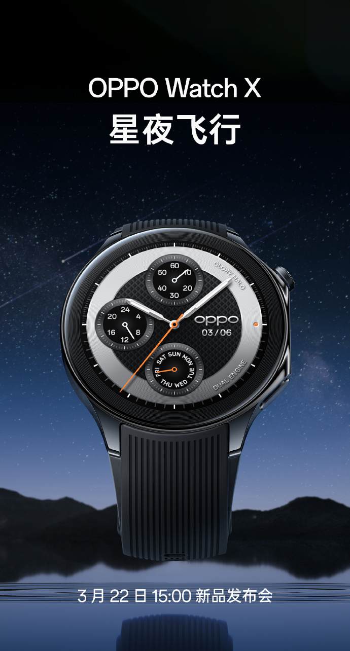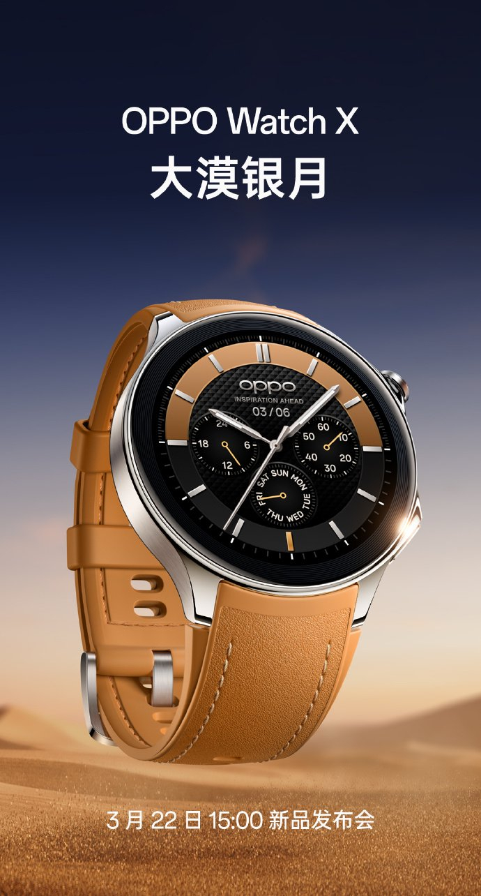 IT之家 3 月 14 日消息,OPPO Watch X 智能手表将于 3 月 22 日在国内上市,号称“全智能标杆”。现在,官方公布了这款新品的三款配色 —— 千帆蔚蓝、大漠银月、星夜飞行。