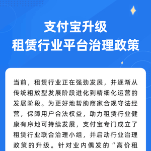 此外,在2023年7月,支付宝更新发布《支付宝租享行业管理规范》,规定了租赁商品总年租金和转销售金额之和不能高于商品官网价格的130%。同年6月,支付宝还成立了租赁行业联合治理小组,并针对行业中的高价租赁、未成年人租赁以及多头租赁和暴力催收等现象推出了一套全链路升级的治理方案。对于发现的商家违规行为,他们会立即要求商家进行整改,并对小程序采取警告、搜索全局屏蔽等处置措施。