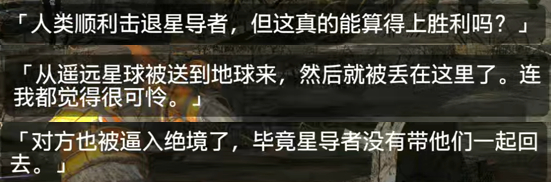 这还只是最初的展开,随着剧情推进,星导者再次回归,人类又一次陷入了全面战争。和以往血脉偾张,上来大喊EDF勇敌外敌设计不同。游戏的前10关,玩家几乎是在绝望中度过的。