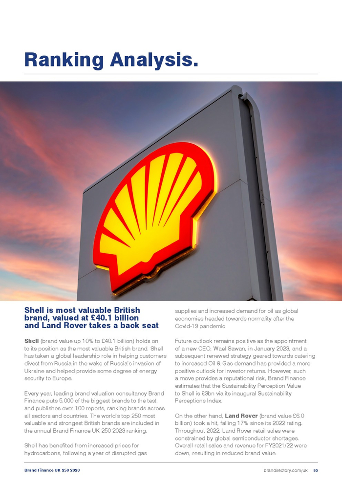 壳牌是最有价值的英国品牌,价值401亿英镑,路虎退居其次