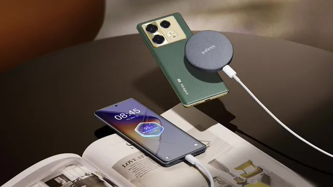 无线充电功率也从去年的 15W 提升到了 20W 磁力闪充。Infinix 还发布了配套的无线充电套装 ——Infinix MagKit,其中包含手机磁吸保护壳、MagPad 充电板和 MagPower 移动电源,方便用户享受无线充电带来的便利。