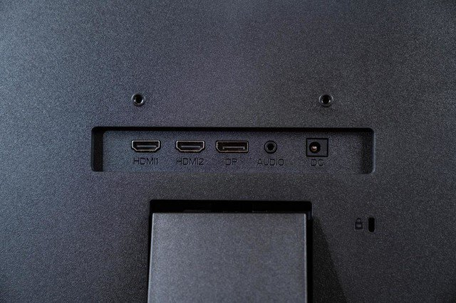 接口方面的设计与大部分显示器不同,并非在底部而是在背部,这样的好处是在拔插线束的时候更加方便,科睿P5支持2个HDMI2.0、1个DP1.4、音频输出接口以及电源接口,兼容笔记本、台式机、XBOX,PS、Switch等各种类型的主机设备,为玩家带来方便的日常使用体验,同时音频输出接口可以外接音响、耳机等音频设备,获得更加舒适优雅的视听盛宴。显示器采用外置电源设计,实际上因为功率较小的原因,电源适配器并不大,日常使用还算便捷。