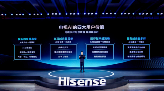 “电视将越来越像家人,越用越亲近,成为我们生活中不可或缺的高能陪伴者。”这是海信视像总裁李炜对AI电视的景愿。同时,李炜还表示,海信电视研发了20项行业领先的电视AI技术以及服务,消费者在今年的众多新品中会陆续体验海信AI电视的魅力。