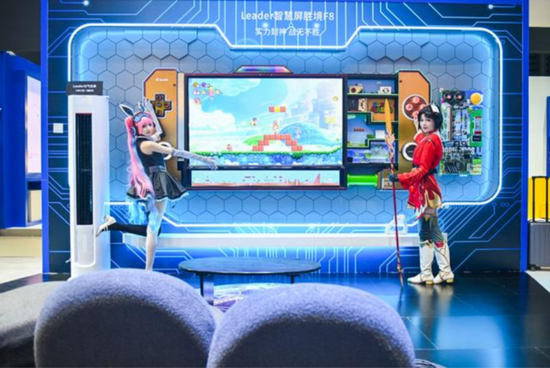 整个N5馆人气最旺的地方,无疑是这台经过“爆改”的Leader智慧屏胜境F8,这款大屏电视经过中国MOD第一人邢凯的设计改造后,俨然成为了一台超大号的SWTICH游戏机,最棒的是他真的能玩。老马也在体验区排队体验了一把,但结果不到一分钟就被人群挤了下去,回头发现是影视飓风的TIM。得,给年轻人腾地方!