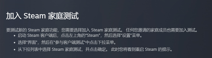 该系统目前已经在Steam上以测试版本上线,玩家需要在“设置”中的“界面”里选择测试正在测试的版本,然后才可以在“家庭”中体验到最新系统内容。