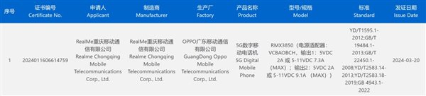 近日,一款型号为RMX3850的 realme 手机通过了国家3C认证,据猜测应该为即将发布的真我GTNeo6SE手机。