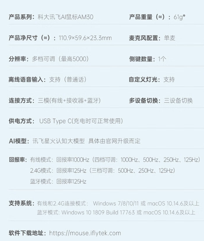 科大讯飞推出 AI 智能鼠标 AM30:搭载星火认知大模型,售价 399 元