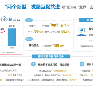 综合来看,移动云在技术创新、基础设施建设、产业链协同、业务拓展和服务体系等方面的布局,使其综合实力持续优化,发展势头强劲。作为中国移动四大产品品牌之一,移动云品牌价值正不断跃升。且据财报,中国移动将继续优化科创体系布局,把深化建设新型信息基础设施作为2024年工作重点,并加大投资推动算网发展提速,支撑应用融合创新。随着在创新研发与市场开拓上的持续发力,相信未来移动云将迈上又一个发展新台阶。