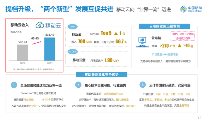 稳居第一阵营,移动云营收833亿