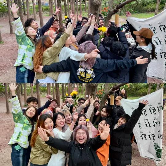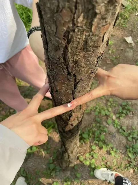 让沙沙和朋友们没想到的是,每一届“抱树艺术家”都有无尽的脑洞。有人会双人拉手,紧贴大树。也有人会用手指围圈,以此象征“守护小树”。