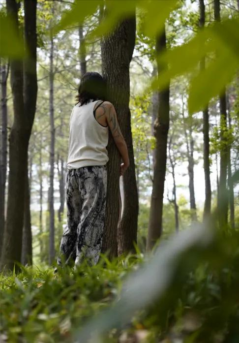 竹子在拥抱大树的时候,好像回到了儿时与爷爷穿过成片麦田,踏入森林的那天。“那里有大片叶落彼此叠交,一踩,便发出窸窣咔嚓的声响,有从高远而茂密的绿冠传来的鸟声,仿佛在做加密的对答。一种大自然独有的‘静’,穿过幼时的记忆,我重新又在那刻被抚慰心情”,她说。