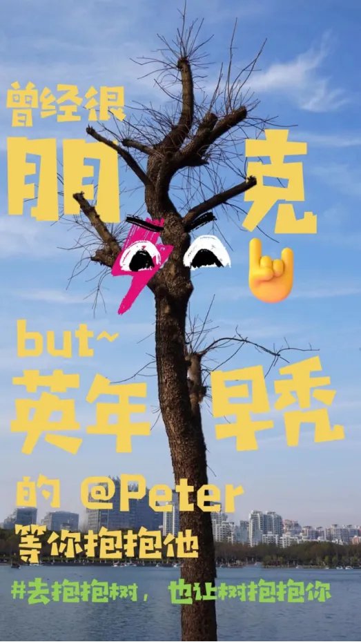 2023年3月,周末还在加班的好友Summer当天就为沙沙写好了完整的创意海报。抱树的治愈力,竟然成为了打工人的第一生产力