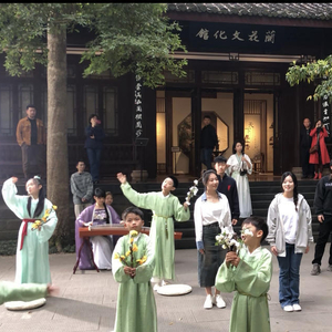成都是一座不乏惊喜的城市,在街头走一走,经常偶遇不一样的美丽风景。3月23日,春日里的杜甫草堂满目翠绿、游人如织。随着悠扬的古琴声,一位“夫子”在草堂中踱步,手持书卷吟唱《春夜喜雨》。一群身着古装的学童围拥而上,其中一个孩子拉着“夫子”的衣襟问:“师父,这首诗真好听,请教教我们吧!”随着“夫子”欣然应允,孩子们开始集体咏唱《春夜喜雨》,充满古典韵味的旋律在杜甫草堂飘扬。