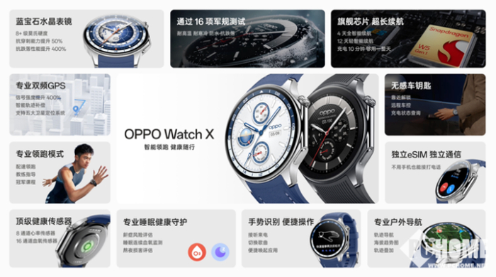 2024年3月22日,OPPO Watch X 新品发布会正式召开,带来 OPPO Watch 系列首款圆表。OPPO Watch X 采用高端腕表必备的蓝宝石水晶表镜,在一体锻压精钢表身上打造极致光影质感;搭载双频GPS,带来专业级定位能力,并为大众跑者打造专业且易用的领跑功能;健康方面,通过顶级传感器和自研算法,打造精准专业的健康监测功能;深度适配理想无感车钥匙和专业户外徒步平台“两步路”,为用户带来极致的智能体验。每一项都是旗舰配置,实现标杆体验全面焕新。