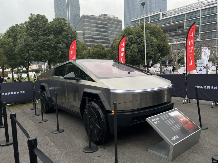 门口C位的是特斯拉参展的赛博越野旅行车,以其炫酷科技感的造型吸引了很多爱好者合照。据介绍,这款车用的是能抵御"子弹"的不锈钢外骨骼结构,也能抵御时速112公里/小时的四级冰雹冲击,支持完全自动驾驶能力与OTA空中升级等,这很"马斯克"。