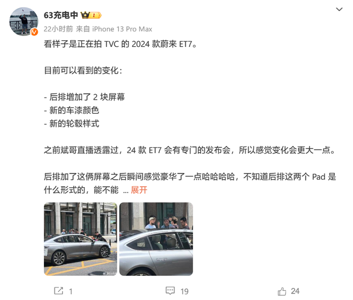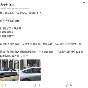2024 款蔚来 ET7 谍照曝光:新增月灰银车色,后排配娱乐屏