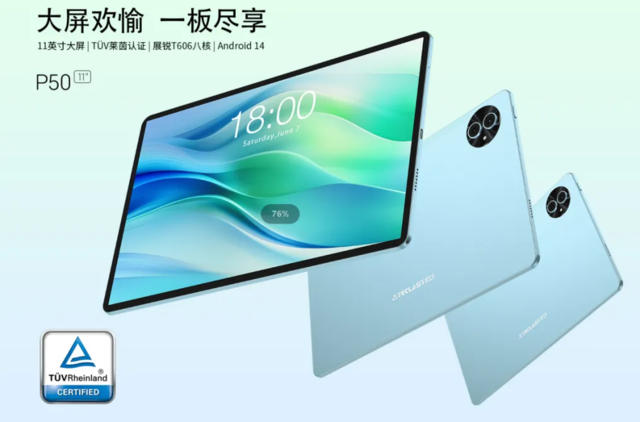台电P50平板电脑亮相:预装安卓 14 系统、紫光展锐 T606 处理器