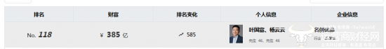 随着公司的不断发展壮大,杨云云的身家财富也水涨船高。2023年,杨云云和叶国富以385亿的财富位列胡润百富榜第118位。