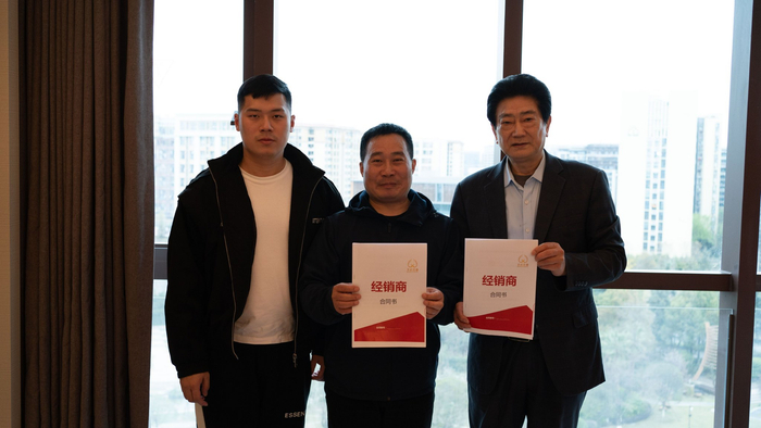 李途纯(右)与经销商签约