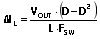 众所周知,当输入电压为输出电压 (VOUT) 的一半时,即占空比 (D) 为50%时 (图3),在连续导通模式下以固定输出电压工作的 DC-DC 升压转换器的电感纹波电流最大值就会出现。这可以通过数学方式来表示,即设置纹波电流相对于 D 的导数 (切线的斜率) 等于零,并对 D 求解。简单起见,假定转换器能效为100%。