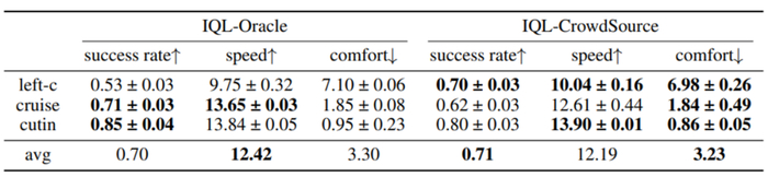 而通过众包标注的简单反馈标签进行奖励函数训练,Uni-RLHF 就能够达到超越专家奖励的任务成功率,并且在舒适度指标上也有所领先。