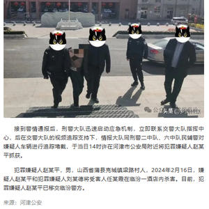 据“晨报临汾”微信公众号消息,2月16日,河津市公安局刑警大队接到稷山县公安局刑警大队警情通报,该大队正在追捕的一名命案嫌疑人已驾车逃至河津。接到警情通报后,河津公安于当日14时许在河津市公安局附近将嫌疑人赵某平抓获。嫌疑人赵某平,男,山西省蒲县克城镇梁路村人,2月16日,嫌疑人赵某平和嫌疑人刘某德将受害人任某霞在临汾一酒店内杀害。目前,嫌疑人赵某平已移交临汾警方。