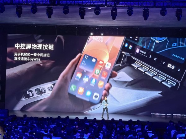 不止于此,小米中控屏物理按键旋钮内置NFC感应,手机轻碰就能连接车内热点。