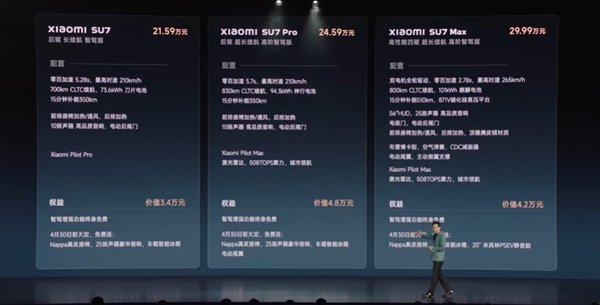 21.59万-29.99万元!小米SU7价格揭晓:三款车型今晚开定 4月开始交付