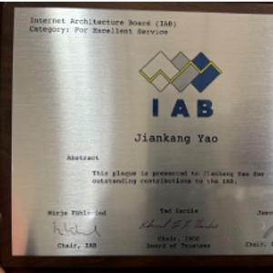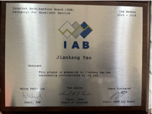 中国互联网络信息中心姚健康获IETF互联网架构委员会杰出贡献奖