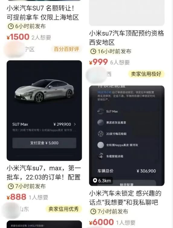 热度高的产品就必然会有黄牛出现,小米SU7也不例外。