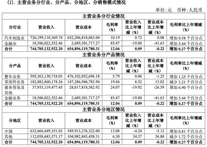 值得注意的是,2023财年上汽集团汽车制造业毛利率为10.19%,同比增长0.58个百分点,其中整车业务的毛利率为5.79%,同比增加1.25个百分点,主要由于营业成本的下降。财报显示,2023财年上汽集团主营业务销售费用为298.79亿元,同比降低0.98%,管理费用为242.40亿元,同比下降5.46%,降本增效初具成效。