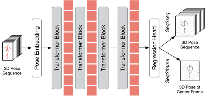 在讨论如何将所提出的方法应用到现有的 VPT 之前,本文首先对现有的 VPT 架构进行了总结。如下图所示,VPT 架构主要由三个组成部分构成:一个姿态嵌入模块用于编码姿态序列的空间与时间信息,多层 Transformer 用于学习全局时空表征,以及一个回归头模块用于回归输出三维人体姿态结果。