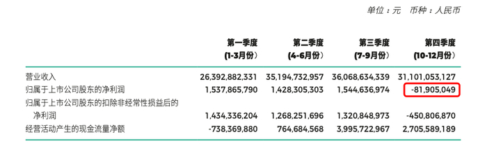 从全年趋势来看,2023年第四季度出现不小的亏损,归母净利润亏损达8190.5万元,上年同期则盈利150.5万元。