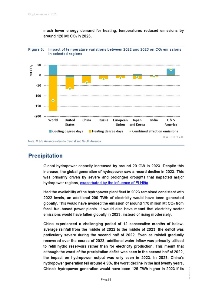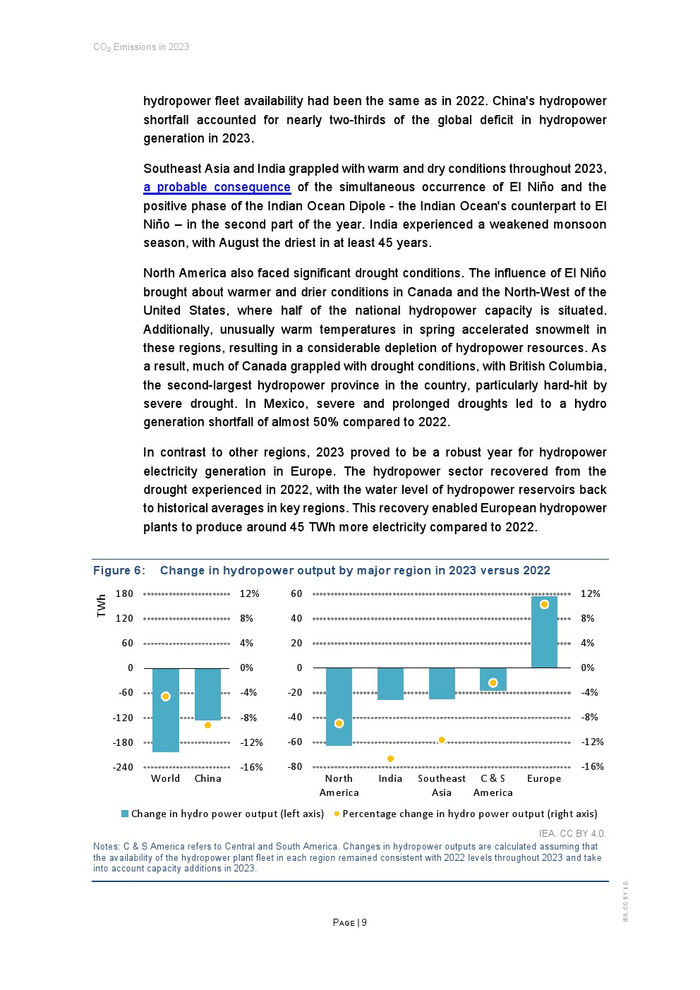 干旱导致的全球水力发电短缺导致排放量增加了约1.7亿吨。如果没有这种影响,全球电力部门的排放量将在2023年下降。