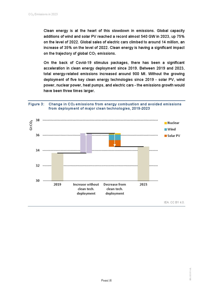 2019年至2023年期间,与能源相关的总排放量增加了约9亿吨。如果没有自2019年以来五种关键清洁能源技术(太阳能光伏、风能、核能、热泵和电动汽车)不断增长的部署,排放量增长将是目前的三倍。