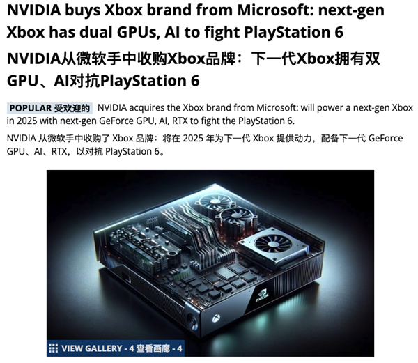 老黄出手,从微软手里买下了 Xbox ,下一代的 Xbox 将有双显卡、 AI 加持,誓要把隔壁的 PS6 锤出人中黄来。